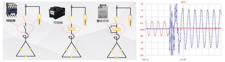Due to the fact that the switching of parallel capacitors in earlier times was achieved through contactors, which have a response time on the second-level scale, its fatal drawback was the large inrush current during switching. In severe cases, it could reach 50-100 times the rated current of the compensation capacitor, resulting in significant arc light and causing damage to capacitors and contactors. Based on the actual operation of on-site loads, alternatives to contactors such as synchronous switches, hybrid switches, and thyristor switches have gradually emerged in the market. These alternatives have greatly improved at switching at zero voltage and interrupting at zero current, significantly reducing equipment damage caused by switching inrush current.