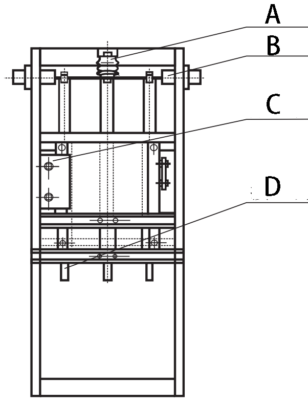 ![]() | Figure 3 A.: Fuse (isolation knife gate) B: Bullet control mechanism C: Load switch D: Current transformer |